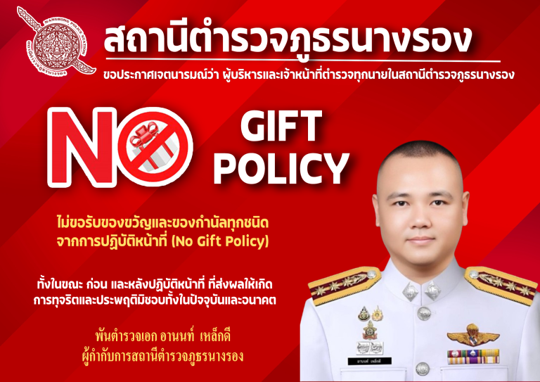 กำชับการปฏิบัติตามนโยบายการต่อต้านการรับสินบน(Anti- Bribery Policy) ไปปฏิบัติ และประกาศไม่รับของขวัญและของกำนัลทุกชนิด (No Gift Policy) จากการปฏิบัติหน้าที่ โดยให้ปฏิบัติโดยเคร่งครัด