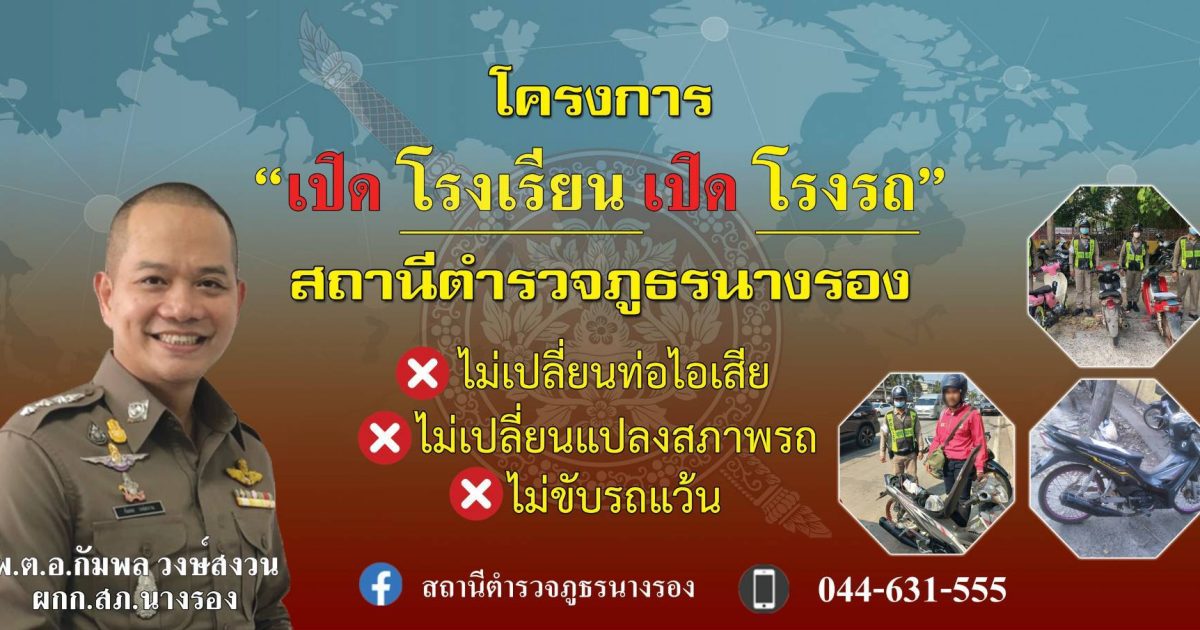 โครงการ เปิดโรงเรียน เปิดโรงรถ สถานีตำรวจภูธรนางรอง 1 มีนาคม 2566 โดย admin / ข่าวประชาสัมพันธ์,ข่าวกิจกรรม สภ.นางรอง ภ.จว.บุรีรัมย์ วันนี้(28ก.พ.66)เวลา15.00 น. พ.ต.อ.กัมพล วงษ์สงวน ผกก.สภ.นางรอง มอบหมายให้ พ.ต.ท.สรคม ราชประโคน รอง ผกก.ป.สภ.นางรอง , พ.ต.ท.ยอชาย โสมคำ สวป.สภ.นางรอง ,ร้อยเวรป้องกันปราบปราม , ร้อยเวรจราจร ,พร้อมทั้งสายตรวจรถจักรยานต์ยนต์และสายตรวจจราจร ชุดสืบสวน สภ.นางรอง เข้าดำเนินการตามโครงการ เปิดโรงเรียนเปิดโรงรถ ที่ โรงเรียนถนนหักพิทยาคมโดยมีนาย สุบิน ฝ่ายเทศ ผู้อำนวยการฯพร้อมคณะครู ให้การต้อนรับ จำนวนนักเรียนผู้เข้าร่วมจำนวน 300 คนพร้อมกับประชาสัมพันธ์วัตถุประสงค์ของโครงการพร้อมกับให้ความรู้ถึงโทษของการฝ่าฝืนไม่ปฏิบัติตามกฏหมายและการไม่ปฏิบัติตามกฏจราจรหัวข้อดังนี้ -แนะนำให้ความรู้เกี่ยวกับมาตรการป้องกันผู้มีพฤติกรรมเสี่ยงในการแข่งรถในทางและความผิดอื่นที่เกี่ยวข้อง -ประชาสัมพันธ์เกี่ยวกับการใช้รถและดัดแปลงสภาพรถที่ผิดกฏหมาย -ขอความร่วมมือในการไม่ขับขี่รถส่งเสียงดังก่อความเดือดร้อนรำคาญ -ขอความร่วมมือให้ใช้รถที่ติดป้ายทะเบียน *ผลการปฏิบัติ -พบรถจักรยานยนต์ดัดแปลงแก้ไขท่อไอเสียจำนวน 1 คันดำเนินการทำทัณณ์บน และไม่ติดป้ายทะเบียน จำนวน 6 คัน จึงดำเนินการว่ากล่าวตักเตือนทำประวัติเป็นลายลักษณ์อักษร และให้ดำเนินการแก้ไขต่อไปHeading Text Here FacebookFacebookXXLINELine