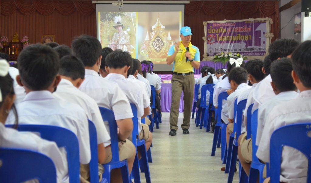 พ.ต.อ.กัมพล วงษ์สงวน ผกก.สภ.นางรอง จิตอาสา 904 หลักสูตรหลักประจำรุ่นที่ 4/62 “ เป็นเบ้าเป็นแม่พิมพ์” เป็นวิทยากรบรรยาย เสริมสร้างอุดมการณ์ความรักชาติ รักสถาบัน และจิตอาสา ให้กับนักเรียนชั้นมัธยมศึกษาปีที่ 1 และชั้นมัธยมศึกษาปีที่ 4 โรงเรียนนเทศบาล 2 (ทีโอเอพิยาคม) ที่เข้ารับการอบรมตามโครงการรณรงค์ป้องกันยาเสพติดในสถานศึกษา ประจำปีงบประมาณ พ.ศ.2567 ของ โรงเรียนเทศบาล 2 (ทีโอเอพิทยาคม) ตำบลนางรอง อำเภอนางรอง จังหวัดบุรีรัมย์