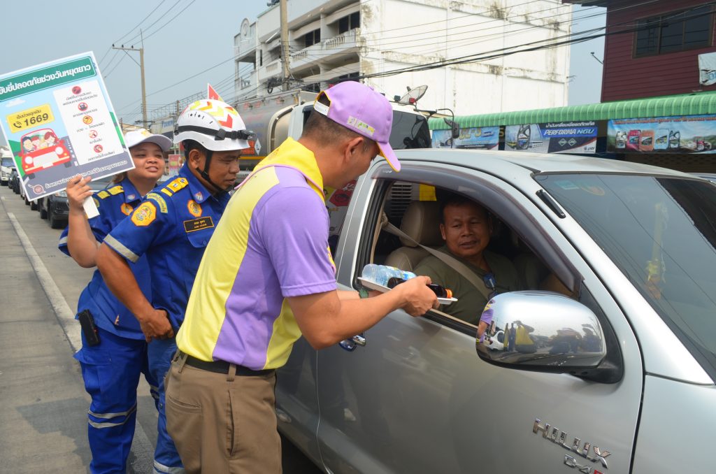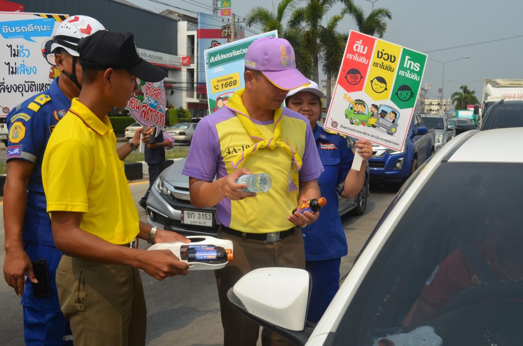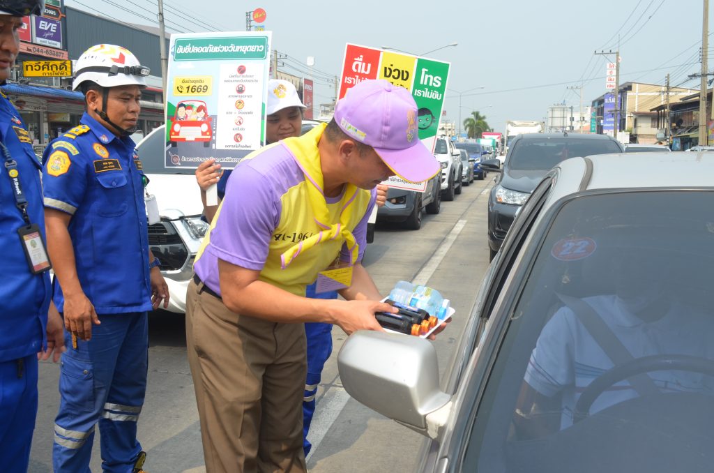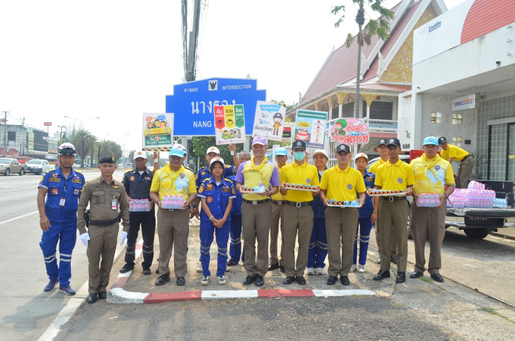 พ.ต.อ.กัมพล วงษ์สงวน ผกก.สภ.นางรอง พร้อมด้วย พ.ต.ต.ชัยชนะ จันทาฤทธิ์ สวป.(ชส.)สภ.นางรอง นำราชการตำรวจชุดชุมชนมวลชนสัมพันธ์ สภ.นางรอง ข้าราชการตำรวจจิตอาสา สภ.นางรอง และนักเรียนนายสิบตำรวจฝึกงาน ร่วมกับหน่วยกู้ภัยสยามบุรีรัมย์ และภาคีเครือข่ายภาคประชาชน ร่วมกิจกรรม “ตำรวจนางรอง รับประชาชนกลับบ้าน แจกน้ำดื่ม M-150 แก่ผู้เดินทางช่วงเทศกาลสงกรานต์ 2567” และอำนวยความสะดวกการจราจร ณ สี่แยกไปรษณีย์อำเภอนาง ตำบลนางรอง อำเภอนางรอง จังหวัดบุรีรัมย์
