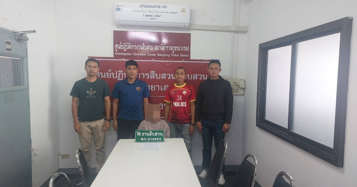 วันที่ 18 ธันวาคม 2567 เวลาประมาณ 11.30 น. เจ้าหน้าที่ตำรวจชุดสืบสวน สภ.นางรอง ภายใต้การอำนวยการของ พ.ต.อ.กัมพล วงษ์สงวน ผกก.สภ.นางรอง, พ.ต.ท.พีรพล หวลระลึก รอง ผกก.สส.ฯ ,พ.ต.ท.ยอดชาย โสมคำ สวป.ฯ ,พ.ต.ต.ทศพล พุ่มแสง นำโดย ร.ต.อ.สราวุธ เมยประโคน(เจ้าพนักงาน ปปส.หมายเลข 6602342) กำลังประกอบด้วย เจ้าหน้าที่ชุดสืบสวน ได้ร่วมกันจับกุมผู้ต้องหาตามหมายจับระหว่างพิจารณาของศาลจังหวัดบุรีรัมย์ จำนวน 1 ราย ผู้ต้องหา 1 คน โดยกล่าวหาว่า “ตามหมายจับระหว่างพิจารณาของศาลจังหวัดบุรีรัมย์ ที่ 28/2567 วันที่ 17 มกราคม 2567 โดยต้องหาว่ากระทำความผิดฐาน “ร่วมกันปลอมและใช้เอกสารราชการ เอกสารสิทธิอันเป็นเอกสารราชการ และเอกสารสิทธิปลอม”