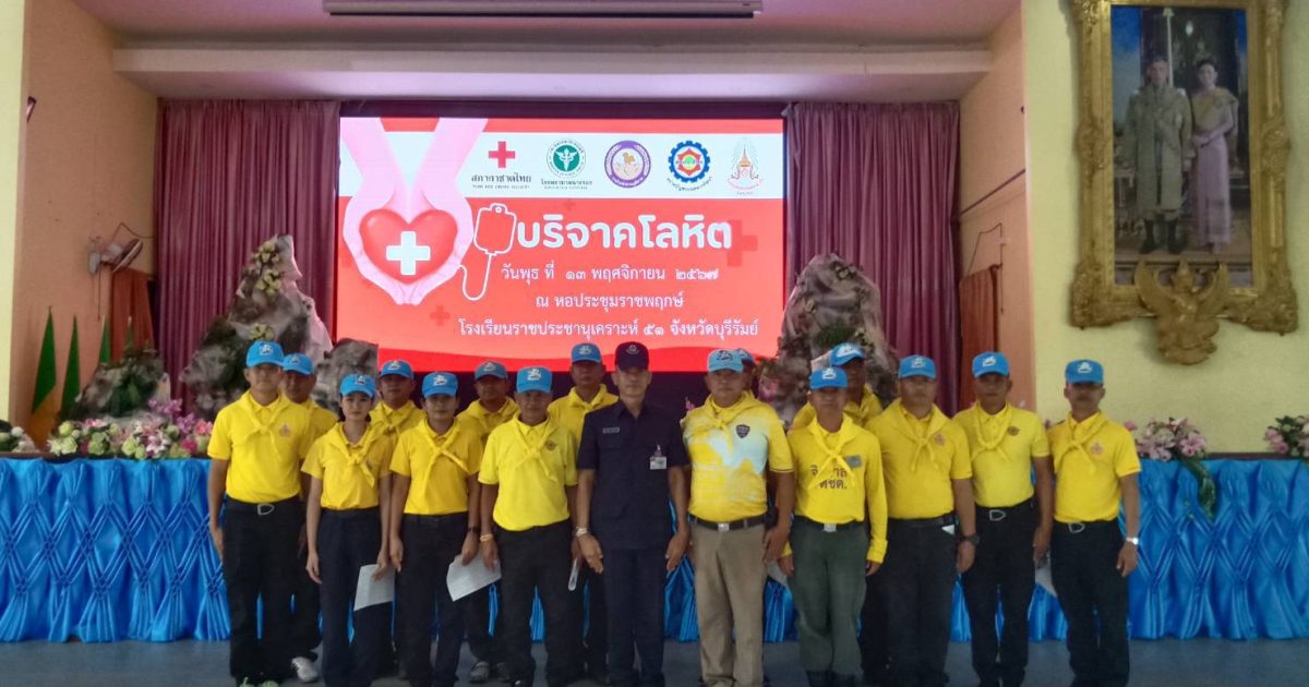 วันนี้(13 พ.ย.67)เวลา 08.30 น. พ.ต.อ.กัมพล วงษ์สงวน ผกก.สภ.นางรอง มอบหมายให้ ร.ต.อ.กรพลวรรธน์ พรหมพินิจ รอง สวป.สภ.นางรอง ร.ต.ท.ณัฐดลย์ จันทร์สว่าง รอง สว(ป.)สภ.นางรอง และ ร.ต.ท.ธีระพล จิตจักร์ รอง สว(ป.)กก ตชด.21 กิจกรรมจิตอาสา “ทำความดีบริจาคโลหิต อวัยวะและดวงตา” ถวายเป็นพระราชกุศล เนื่องในมหามงคลเฉลิมพระชนมพรรษาครบ 6 รอบ 72 พรรษา พระบาทสมเด็จพระปรเมนทรรามาธิบดีศรีสินทรมหาวชิราลงกรณ พระวชิรเกล้าเจ้าอยู่หัว วันที่ 28 กรกฎาคม 2567-แผน/กิจกรรมกิ่งกาชาดอำเภอนางรอง ประจำเดือน พฤศจิกายน 2567*โดยมี นางรัชนีกร สวัสดิ์พูน ปลัดอำเภอ หน.กลุ่มงานบริหารงานปกครอง รักษาราชการแทนนายอำเภอนางรอง ปลัดอำเภอ สมาชิกกิ่งกาชาดอำเภอนางรอง พ.อ.ยศกร บุญบวรพงศ์ ผบ.นพค.52 สนภ.5 นทพ. พร้อมคณะฯ คณะครู/นักเรียน นำโดย น.ส.ปนัดดา จันทวงศ์ ผอ.โรงเรียนราชประชานุเคราะห์ 51 จังหวัดบุรีรัมย์ ออกหน่วยรับบริจาคฯ ร่วมกับ คลังเลือด รพ.นางรอง และ ประชาชนจิตอาสาในพื้นที่ ณ ห้องประชุมโรงเรียนราชประชานุเคราะห์ 51 จังหวัดบุรีรัมย์ ต.นางรอง อ.นางรอง จว.บุรีรัมย์