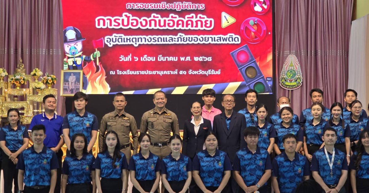 วันที่ 6 มีนาคม 2568 เวลา 09.00 น. พ.ต.อ.กัมพล วงษ์สงวน ผกก.สภ.นางรอง พร้อมด้วย พ.ต.ต.ชัยชนะ จันทาฤทธิ์ สวป.(ชส.)สภ.นางรอง ร่วมเป็นวิทยากรบรรยายให้ความรู้ในหัวข้อ “น้ำดื่มพืชกระท่อม บุหรี่ไฟฟ้า และการปฏิบัติตนให้ห่างไกลยาเสพติดติด ในสถานศึกษา” แก่นักเรียนและบุคลากรของโรงเรียนราชประชานุเคราะห์ 51 จังหวัดบุรีรัมย์ ที่เข้ารับการอบรมโครงการการอบรมเชิงปฏิบัติการการป้องกันอัคคีภัย อุบัติเหตุทางถนนและภัยของยาเสพติด เพื่อเป็นการสร้างความตระหนักรู้ถึงโทษภัยของยาเสพติด ณ หอประชุมโรงเรียนราชประชานุเคราะห์ 51 จังหวัดหวัดบุรีรัมย์ ตำบลนางรอง อำเภอนางรอง จังหวัดบุรีรัมย์