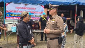 พ.ต.ท.พีรพล หวลระลึก รอง ผกก.สส.สภ.นางรอง , พ.ต.ท.ชัยชนะ จันทาฤทธิ์ สวป.(ชส.)สภ.นางรอง พร้อมด้วยชุดจิตอาสา สภ.นางรอง ออกตรวจเยี่ยมให้กำลังใจ ผู้ที่ได้รับผลกระทบจากสถานการณ์ความไม่สงบชายแดนไทย – กัมพูชา พร้อมมอบน้ำดืมและอาหารเพื่อเป็นขวัญและกำลังใจ ณ ศูนย์พักพิงในเขตพื้นที่รับผิดชอบ
