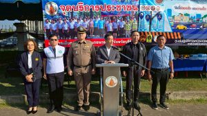 วันที่ 30 ธันวาคม 2569 เวลา 09.00 น.พ.ต.อ.อานนท์เหล็กดี ผกก.สภ.นางรอง พร้อมด้วย,พ.ต.ท.สรคม ราชประโคน รอง ผกก.ป.สภ.นางรอง , พ.ต.ท.พีรพล หวลระลึก รอง ผกก.สส.สภ.นางรอง , พ.ต.ต.ชัยชนะ จันทาฤทธิ์ สวป.(ชมส.)สภ.นางรอง นำกำลังข้าราชการตำรวจ สภ.นางรอง และตำรวจจิตอาสา สภ.นางรอง ร่วมกับเจ้าหน้าที่ฝ่ายปกครอง เจ้าหน้าที่กู้ภัย และหน่วยงานที่เกี่ยวข้อง ร่วมพิธีเปิดจุดบริการประชาชนช่วงเทศกาลปีใหม่ 2569 ตามโครงการป้องกันอุบัติเหตุและบริการประชาชนช่วงเทสกาลปีใหม่ ประจำปีงบประมาณ 2569 โดยมี นายวีระเกียรติ รัมณีย์รัตนากุล นายกเทศมนตรีเมืองนางรอง เป็นประธานในพิธี ณ จุดบริการประชาชน บริเวณหน้าสำนักงานเทศบาลเมืองนางรอง ตำบลนางรอง อำเภอนางรอง จังหวัดบุรีรัมย์