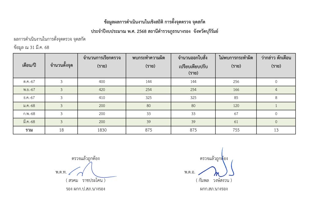 สถิติในการตั้งจุดตรวจ จุดสกัด เดือน มีนาคม 2568