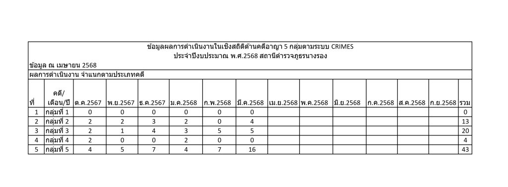 ข้อมูลผลการดำเนินงานในเชิงสถิติ สถานีตำรวจภูธรนางรอง